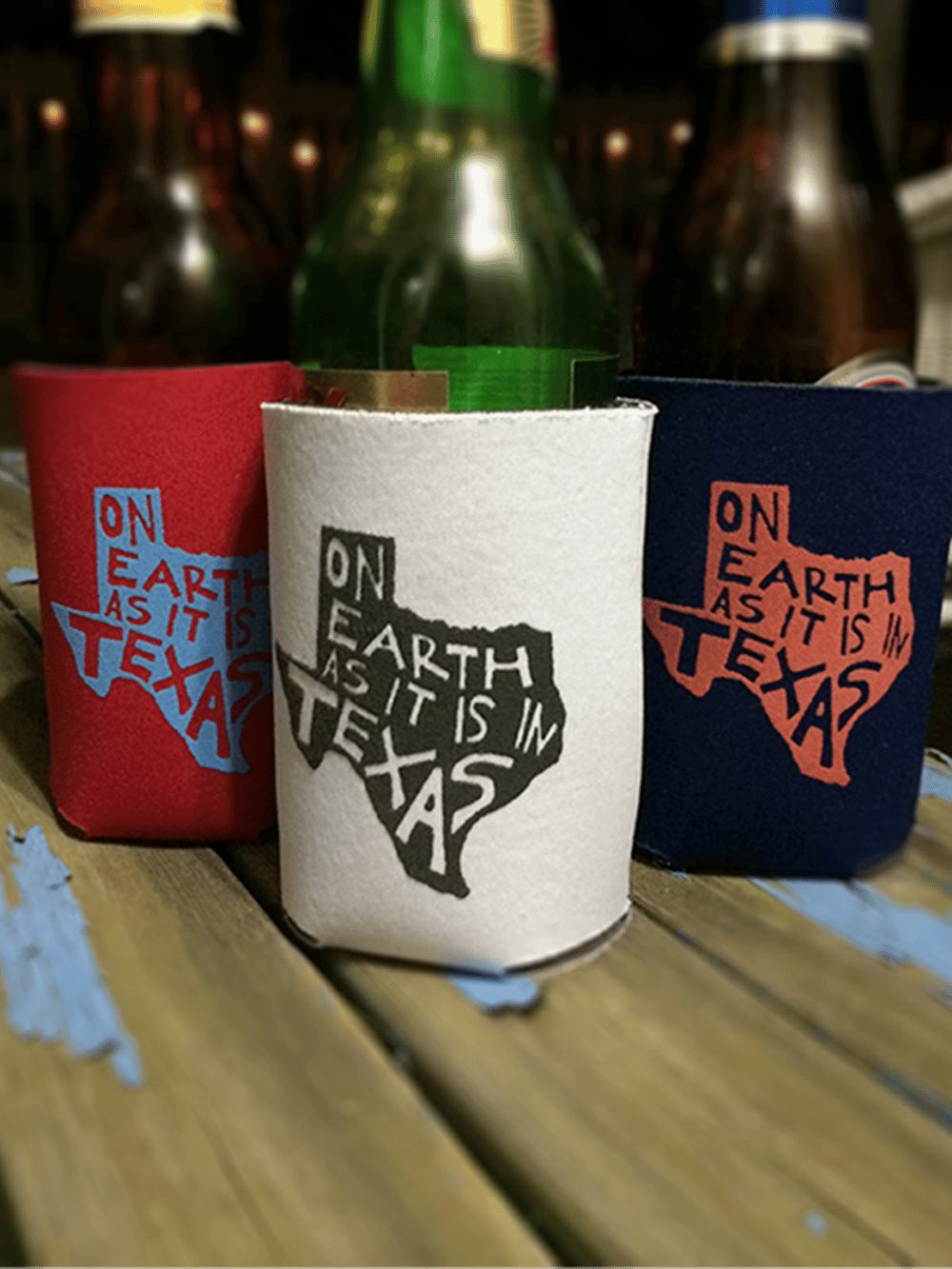 Keep your drink of choice cool this summer with these fun and witty koozies. Each 3-pack comes with a black/white, red/blue and blue/red koozie. Buy a few and pass them out to friends as the perfect gift and let these words, "On Earth as it is in Texas" define you and your loved ones this summer. Whether you're on the back porch watching the sunset, grilling out in the park, hangin on the boat or chillin by the pool - make sure to remember how beautiful this life is that we live.